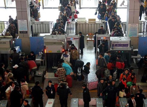 車站安檢大隊共計擁有隊員400余名,平均年齡25歲,全部大專及以上學歷,在所有服務的7個站點中,按照服務內容及工作區(qū)域設置“四區(qū)四崗”,即引導分流區(qū)引導員崗位、人證核實區(qū)查驗員崗位、人身手檢區(qū)手檢員崗位、圖像識別區(qū)值機員崗位,引導員根據候檢旅客及行李數量實行分段放行,并提示旅客將自己的行李物品放在X光安檢儀傳送帶上接受安檢,與此同時,手檢員按照標準十八個步驟對旅客進行全身手檢,并對旅客隨身攜帶的瓶裝液體進行提示試喝檢查,值機員則通過X光安檢儀對旅客行李物品進行檢查,如發(fā)現可疑物品,值機員會通知站方值班人員,一同對可疑行李物品進行開包檢查。