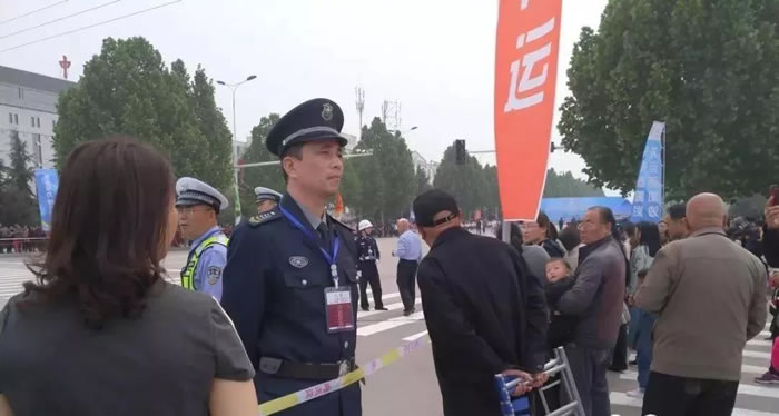 上午9:00活動(dòng)正式開始?;顒?dòng)現(xiàn)場(chǎng)彩旗飛舞,人潮涌動(dòng)。保安員高度負(fù)責(zé),嚴(yán)格落實(shí)安保措施,耐心引導(dǎo)群眾文明有序觀看,嚴(yán)防因人員過度密集而導(dǎo)致?lián)矶虏忍な录陌l(fā)生,切實(shí)保障群眾安全。在長(zhǎng)達(dá)4個(gè)多小時(shí)的安保過程中,參戰(zhàn)保安員以嚴(yán)整的隊(duì)容風(fēng)貌,飽滿的精神狀態(tài)投入到安保工作,與平陸縣公安機(jī)關(guān)、保安同行密切協(xié)作,連續(xù)作戰(zhàn),恪盡職守,服從命令,圓滿完成了安保任務(wù),展現(xiàn)了三門峽保安隊(duì)伍的良好形象,得到了平陸縣公安機(jī)關(guān)及活動(dòng)組委會(huì)有關(guān)領(lǐng)導(dǎo)的贊揚(yáng)和肯定。