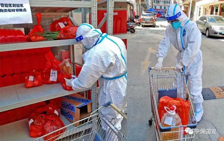 為了做好封控區(qū)、管控區(qū)、防范區(qū)居民的生活保障和應(yīng)急處理工作,中保國(guó)安集團(tuán)在每一個(gè)所負(fù)責(zé)的社區(qū)成立了生活保障服務(wù)組、應(yīng)急處理工作組,快速響應(yīng)居民需求,協(xié)助處理緊急情況,關(guān)愛(ài)幫扶特殊群體,分揀快遞和外賣……哪里有需要,我們就出現(xiàn)在哪里,急人所急,守望相助,并肩抗疫。