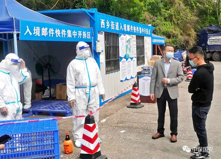 為切斷境外輸入傳播鏈條,根據(jù)《深圳市入境郵件快件取件點(diǎn)處置指引(第一版)》要求,中保國(guó)安集團(tuán)派出保安隊(duì)伍在寶安區(qū)西鄉(xiāng)街道入境郵件快件集中開(kāi)拆區(qū),開(kāi)展入境郵件末端投遞、快件接收環(huán)節(jié)的疫情防控工作。